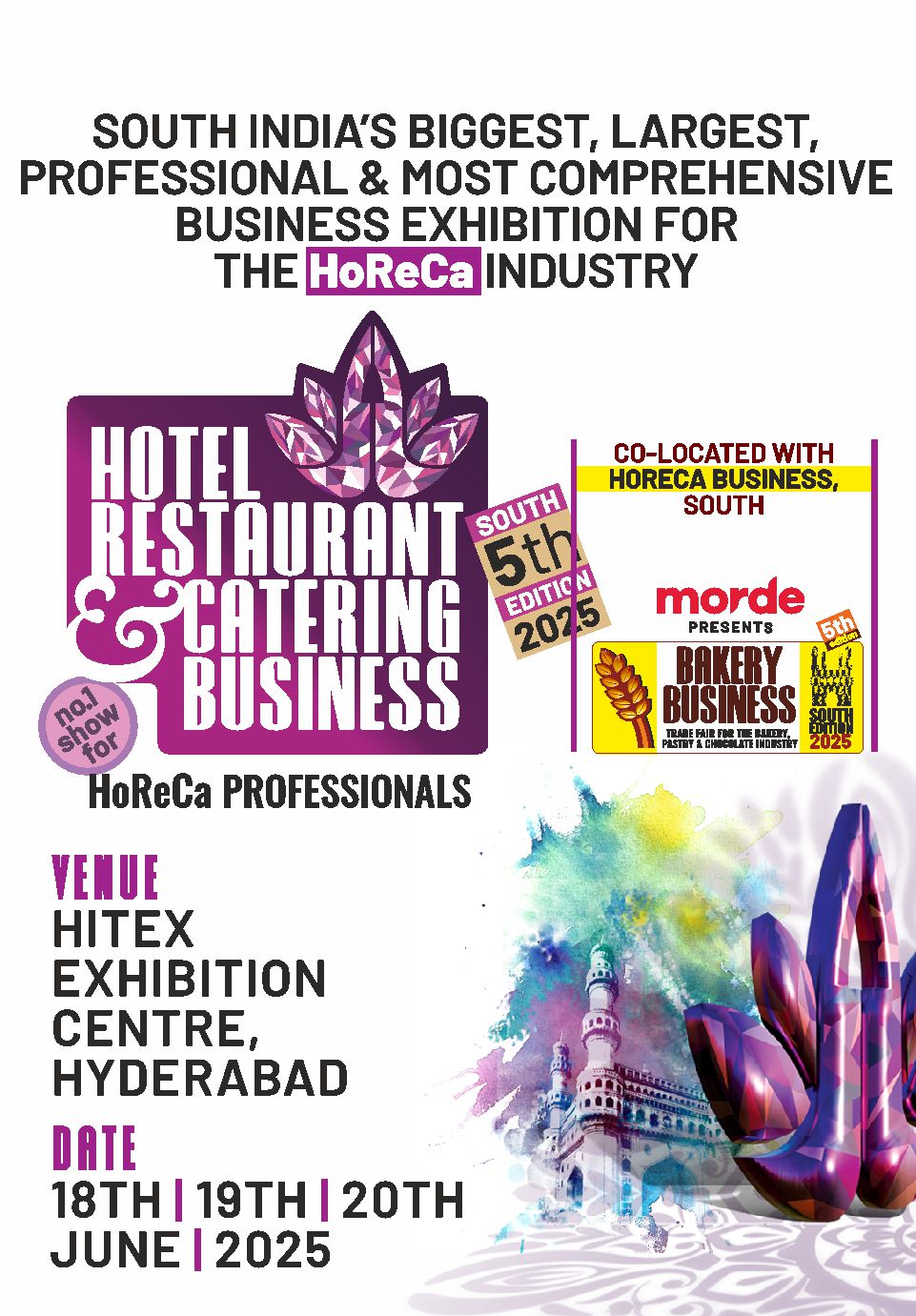 HOSPITALITY FIRST, market leaders and pioneers of established and successful business trade platforms in the Indian bakery industry through BAKERY BUSINESS, a 17-year-old show and the HOTEL RESTAURANT & CATERING BUSINESS, 12-year-old show, The Geographical Business Canvas in India is so diverse, it necessitated, on industry demand, to replicate our Flagship BAKERY BUSINESS &HORECA BUSINESS model of Mumbai to other parts of the country.